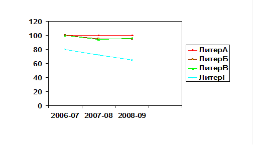 Из данных графика видно, что качество знаний учащихся классов А,Б и В сохраняется в течение трёх лет выше 90%. Незначительное снижение на втором году обучения связано с существенным усложнением учебной программы по сравнению с Милли2. Однако на третьем году обучения процент качества выравнивается. В классе Г мы наблюдаем снижение качества знаний. Причиной тому – вновь прибывшие учащиеся, ранее не изучавшие английский язык, а также учащийся из неблагополучной семьи Дзюин Саша, часто пропускавший занятия по семейным обстоятельствам. Оценка по предмету у остальных учащихся литера Г не снижается.
