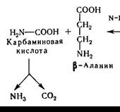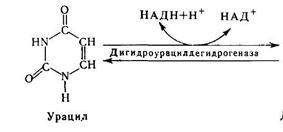 Образование мочевой кислоты происходит главным образом в печени. Это основной продукт катаболизма пуриновых нуклеотидов у человека. В организме ее в сутки образуется 0,5-1 г, выводится она через почки. Хроническое повышение концентрации мочевой кислоты (гиперурикемия) часто приводит к развитию подагры. Подагрический криз связан с отложением кристаллов урата натрия в суставе. Гиперурикемия обычно имеет наследственный характер. Распад пиримидиновых оснований также начинается с дезаминирования. Дезаминированные пиримидиновые основания подвергаются восстановлению. Карбаминовая кислота и b-аланин - конечные продукты распада У и Ц. Из Т вместо b-аланина образуется b-аминоизомасляная кислота.