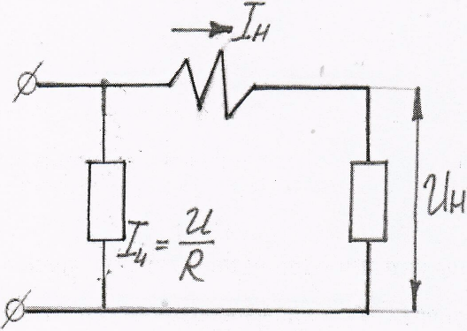 Основные части: 2 электромагнита. П - образный электромагнит имеет катушку с небольшим числом витков из толстой медной проволоки, включается последовательно с нагрузкой и называется токовый электромагнит. Б - образный электромагнит имеет катушку с большим числом витков из тонкой проволоки. Включается параллельно с нагрузкой, называется электромагнит напряжения. Легкий алюминиевый диск может вращаться вокруг вертикальной оси. Постоянный магнит для создания противодействующего момента. Счетный механизм для подсчета числа оборотов диска. Генератор подключается к нечетным клеммам 1 и 3, причем фаза к клемме1, нагрузка к четным клеммам 2 и 4. ФI - магнитный поток, создаваемый токовым электромагнитом, создает в диске индукционный ток iдI Фu - магнитный поток, создаваемый электромагнитом напряжения, создает в диске индукционный ток iдu В результате взаимодействия индукционных токов с магнитными потоками другого электромагнита возникают cилы: f1 ~ ФIiдu; f ~ ФuiдI, но iдu ~ Фu;iдI ~ ФI ; поэтому f ~ ФIФu Можно показать, что средний вращающий момент равен: Мвр = kФImФumsin ψ; где ψ – сдвиг фаз между ФI и Фu Чтобы Мвр был пропорционален активной мощности Р, необходимо выполнение следующих условий: 1)ФI = kIII = kIIн, Фu = ku Iu = ku Uн\Rк. Это условие выполняется благодаря схеме включения. 2)sinψ = cosφ; φ - сдвиг фаз между Iн и Uн, то есть должно быть ψ = 90° - φ. Выполнение условия 2 вытекает из векторной диаграммы. При выполнении этих условий вращающий момент будет: Мвр = kIIн* ku Uн \Rк*cosφ = k1 IнUн cosφ = P