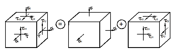 Рассмотрим далее общий случай объёмного напряжённо-деформированного состояния (рис. 3.10).