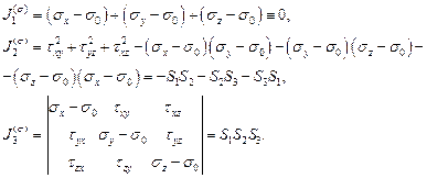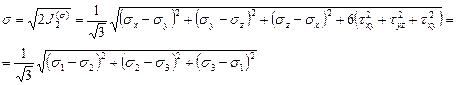 Примем в (49) где коэффициенты: являются инвариантами девиатора напряжений при преобразовании координатных осей. Удобная форма к правой части или где использовано, что Второй инвариант девиатора напряжений играет фундаментальную роль в сопротивлении материалов пластическому деформированию. Величину или называют модулем тензора–девиатора напряжений. Величину называют модулем тензора напряжений, а Общее решение кубического уравнения (52) в тригонометрической форме Кордано имеет вид: где угол Определив