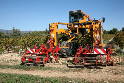 Рисунок 2.2 Самоходный комбайн фирмы «Pellenc», Франция на проведении технологических операций по возделыванию винограда. Для дальнейшего развития отрасли садоводства и виноградарства кроме организованных, технологических и экономических факторов необходимо развивать и техническое переоснащение отрасли машинами современного технического уровня, которые позволяют экономить энергетические, трудовые и денежные ресурсы, повышая конкурентоспособность продукции отрасли