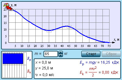 Потенциальная энергия E р зависит от выбора нулевого уровня, т. е. от выбора начала координат оси OY. Физический смысл имеет не сама потенциальная энергия, а ее изменение Δ E р = E р2 – E р1 при перемещении тела из одного положения в другое. Это изменение не зависит от выбора нулевого уровня.