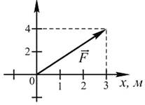 На рисунке показан вектор силы, действующей на частицу. Работа, совершенная этой силой при перемещении частицы в точку с координатами (4; 3), равна...