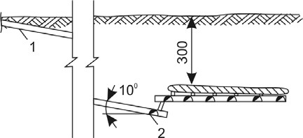 1 – наклонный ствол; 2 – околоствольный двор Рисунок 2.2 – Схема вскрытия месторождения наклонным стволом и горизонтальным квершлагом. Для выше приведенных схем рассчитываем длинны стволов: