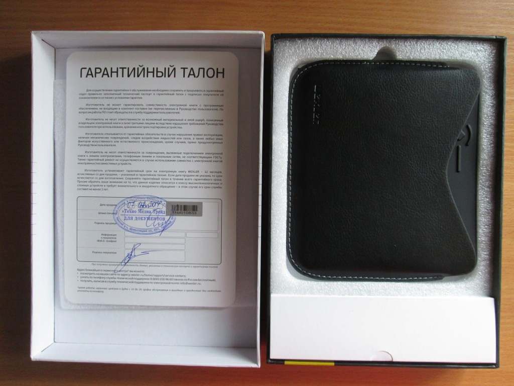 В комплект входит: зарядное устройство, чехол, USB-кабель, гарантийный талон, мультикарта (позволяет иметь до 50% дополнительных средств для покупки книг на сайте www.wexler.ru)