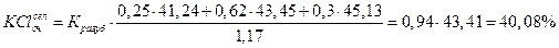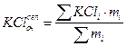 Средневзвешенное содержание по выработке KClвыр, %, определяем по формуле