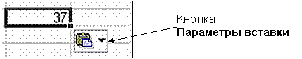 Если команду Вставить вызывать из контекстного меню ячейки вставки, то рядом со вставленным в ячейку значением появится кнопка Параметры вставки, щелчок на которой откроет список параметров.