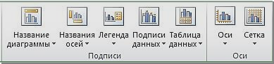 Диаграмму можно разделить на следующие компоненты: · Область диаграммы – этот блок отвечает за все компоненты диаграммы. · Область построения диаграммы – отвечает за саму диаграмму в целом. · Основание – плоскость, на которой располагаются представленные в виде диаграммы данные. · Стены – боковые панели, на которых находятся основные линии сетки (представляют ось значений). · Ось значений и ось категорий – числовые параметры, оценивающие данные для диаграммы. · Заголовок диаграммы – название. · Заголовок оси значения и название оси категорий. · Легенда – расшифровывает значение рядов или строк. · Ряды (или строки) – наглядный показатель данных, на основе которых построена диаграмма. · Подписи данных – точные цифровые параметры рядов (строк) диаграммы. Вкладка Макет содержит команды с названиями всех компонентов диаграммы, и, щелкнув по кнопке с соответствующим названием, можно форматировать элементы диаграммы.