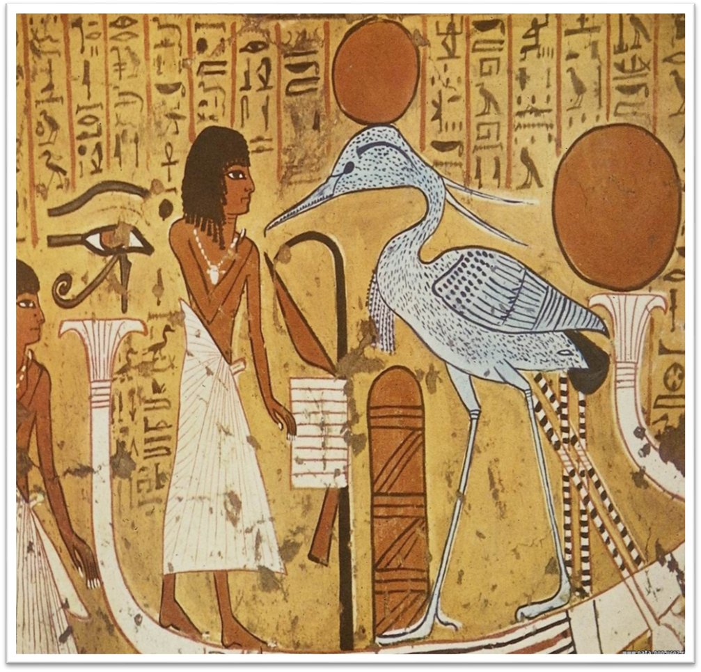 Роспись «Охота на птиц в зарослях папируса» служит примером того, как различно египтяне изображали людей и животных. Кошка, птицы и рыбы изображены реалистично. При желании можно даже определить вид птиц и рыб. Они не стоят на месте, египетские художники передали их движение с большим мастерством. Напротив, люди изображены статично, без движения. Туловища людей искажены. Голова и и ноги показаны сбоку, верхняя часть туловища и руки спереди, а кулаки сзади. Если попытаться занять ту же позу, что и на росписи, то нам вряд ли это удастся. Египтяне не стремились изображать людей реалистично. Всякий раз они показывали лишь одну сторону части тела. Все зависит от того, с какой стороны эту часть тела легче узнать. Существовал специальной канон (правила) изображения человека: Лицо и ноги изображали в профиль; Верхняя часть туловища – анфас; Бедра - на три четверти анфас; Глаза увеличены и подчеркнуты; Верхняя часть туловища – спереди; Ноги – в движении; Регламентировалась также величина (рост) человека на рисунке: Мужчина как глава семьи изображался выше всех; Его жена не доставала ему даже до плеча; Дети были еще меньше, хотя на египетских росписях они выглядели как маленькие взрослые; Если дети были совсем маленькие, их рисовали голыми. Особенно строго канон применялся к изображению высокопоставленных персон. Чем ниже стоял человек на социальной лестнице, тем больше было свободы в его изображении; дети и животные находились в самом низу, и это одна из причин того, египетские животные и птицы особенно очаровательны. Они могут и летать, и прыгать, и бить крыльями, не теряя достоинства, которого у них нет. Слуги были личностями совершенно незначительными, и поэтому их можно было изображать за занятиями, которые вовсе не подобали аристократу. Одна из главных черт египетского двухмерного рисунка - отсутствие разницы между ближними и дальними объектами. Ясное представление об этом дает способ изображения человеческой фигуры. Представьте себе, что вы хотите нарисовать человека. Если вы его покажете спереди, то столкнетесь с некоторыми затруднениями. Вы, будучи не обучены рисованию, не сможете нарисовать нос так, чтобы он смотрелся, как нос. Еще сложнее будет со ступнями ног: они будут похожи на деревяшки. И вот вы решаете нарисовать человека в профиль. Нос теперь смотрится, как нос, а ноги – как ноги. Но как быть с плечами? Египтяне в таком случае выбирали нечто среднее между двумя вариантами – профилем и видом спереди. Лицо рисовалось в профиль, а глаза как бы спереди; плечи опять-таки были представлены видом спереди, я ноги – в профиль, однако в промежутках тело было повернуто так, что резких перемен не было.Прежде всего мы должны помнить, что большая часть египетских произведений искусства предназначалась для погребений, и функция его была не эстетической. Роспись гробниц не была предназначена для того, чтоб это место выглядело красиво. Она служила тому, чтобы мертвый имел в загробном мире все вещи и все удовольствия, которые были здесь изображены. Древнее искусство как таковое считается обязанным своим происхождением магии, поэтому очень важно, чтобы изображаемый объект был показан как можно полнее и подробнее, так, чтобы никакая из важных деталей не пропала; тогда подобие его будет представлено душе умершего в духовном мире.