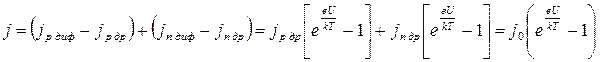 Если прикладывать прямое напряжение, высота барьера уменьшается и токи основных носителей будут экспоненциально возрастать. Плотность полного тока через переход будет равна