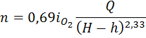 де h – глибина спокійної ванни, м; Vnum – питомий об'єм конвертера,м3/т.