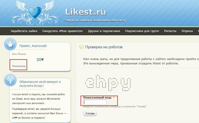 Попадаете на сайт, пополняете лайки (или используйте бонусовые).
