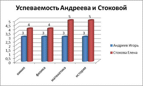 Построим диаграмму(гистограмму) успеваемости всех студентов по всем предметам. Вставка → Гистограмма → Объемная гистограмма.