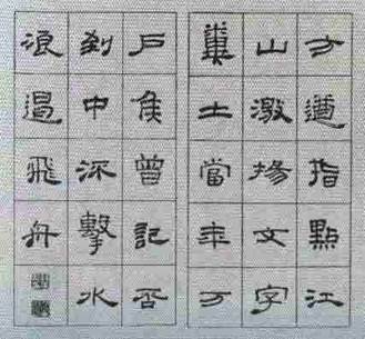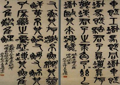 2) Чжуаньшу - «древняя печать» и лишу - «писцовое» или «деловое письмо», уже вышли из повседневного обихода. В стиле чжуаньшу выполнены древнейшие письмена на гадательных костях животных и панцирях черепах - цзягувэнь и надписи на ритуальных бронзовых сосудах - цзинъвэнь. Стиль чжуаньшу характеризуется наименьшим числом черт: в нём отсутствуют точка, крючок и ломаная. Ещё одна особенность стиля - одинаковая толщина всех черт.