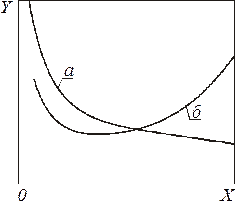 Рис. 2.7. Возможный вид закономерностей влияния условий эксплуатации на показатели качества автомобилей: тип показателя качества (Ymin, ¥); тип фактора (Xmin, ¥)