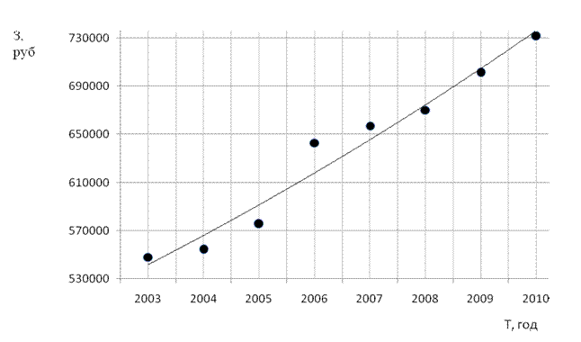 Рис. 3.4 Зависимость затрат от срока эксплуатации ГАЗ-3302 Из исследования зависимости затрат от срока эксплуатации можно сделать вывод о том что с течением времени затраты на автомобиль увеличиваются. Отсюда прибыль от использования этой техники начинает падать и в какой-то момент технику эксплуатировать становится невыгодно. Для оптимизации затрат на эксплуатацию автомобиля вводим свой метод, который основан на замене техники в рациональные сроки, чтобы максимально эффективно пользоваться автопарком и получать от него максимальную прибыль.
