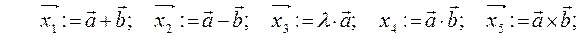 Операции над векторами Операции над векторами можно выполнять используя кнопки матричной и векторной палитры, калькулятора и клавиатуры. Последовательность действий иллюстрирует следующий пример. ПРИМЕР 2.1 Введём векторы