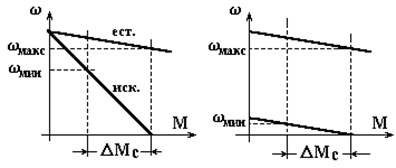 С жесткостью характеристик связан также еще один показатель - стабильность скорости на искусственных характеристиках. Она может быть низкая - рис. 2.8,а и высокая рис. 2.8,б; иногда требуется абсолютно жесткие характеристики ( Плавность регулирования - возможность получать искусственные характеристики, расположенные как угодно близко друг к другу, - плавное регулирование или, наоборот, возможность иметь лишь несколько фиксированных характеристик - ступенчатое регулирование. Экономичность регулирования оценивается потерями энергии, сопровождающими тот или иной способ регулирования. Иногда экономичность удается грубо оценить, сравнивая полезную мощность