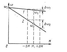 42. Стабильность угловой скорости. Стабильность угловой скорости характеризуется изменением угловой скорости при заданном отклонении момента нагрузки и зависит от жесткости механической характеристики; она тем выше, чем больше жесткость характеристики.