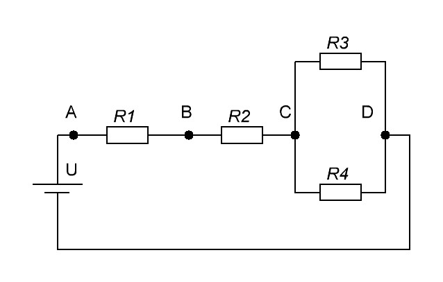 Если разветвление подключено непосредственно к зажимам источника тока, то напряжение на каждом из сопротивлений равно напряжению на зажимах источника.