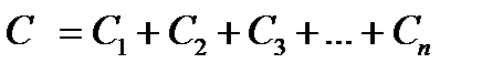 где ε – диэлектрическая проницаемость среды, ε Конденсаторы можно соединять в батарею, причем при последовательном соединении (рис.1) емкость батареи рассчитывается по формуле