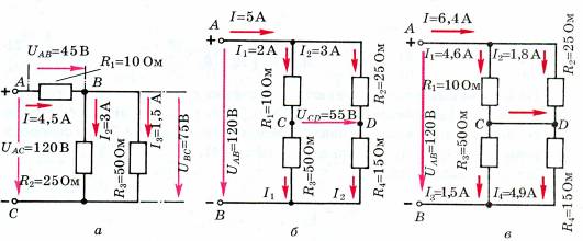 Рисунок 1. Расчет сопротивления участка цепи при смешанном соединении резисторов. Задания для студентов:при заданных номиналах R,I иU определить токи в ветвях? Использовать законы для последовательного и параллельного соединения резисторов.