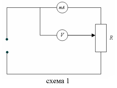 Величина, определяемая формулой (5), называется электрическим сопротивлением или просто сопротивлением провода. Формула (4) выражает закон Ома для участка цепи в интегральной форме, в отличие о формулы (1) выражающей этот же закон в дифференциальной форме. Сопротивление проводника можно измерить двумя способами: 1. Измерение сопротивления по методу с точным измерением тока (основным измерительным прибором является амперметр). 2. Измерение сопротивления с точным измерением напряжения. При измерении по первому методу используется схема №1, по второму схема №2.