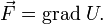 Если работа сил поля, действующих на перемещающуюся в нём пробную частицу, не зависит от траектории частицы, и определяется только её начальным и конечным положениями, то такое поле называется потенциальным. Для него можно ввести понятие потенциальной энергии частицы — некоторой функции координат частиц такой, что разность её значений в точках 1 и 2 равна работе, совершаемой полем при перемещении частицы из точки 1 в точку 2. Сила в потенциальном поле выражается через потенциальную энергию как ее градиент: