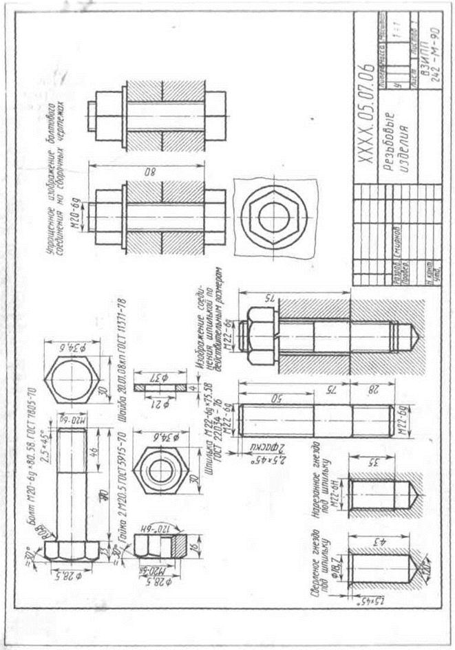 Тема 7. Изображение и обозначение резьб, соединений на резьбе, изображение и обозначение крепежных деталей - болтов, винтов, шпилек, гаек, шайб, шплинтов