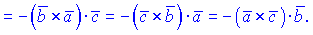 Так как векторы на практике задают в координатной форме, то их смешанный произведение равен определитель, построенном на их координатам В силу того, что векторное произведение антикомутативно, а скалярное произведение коммутативно, то циклическая перестановка векторов в смешанном произведении не изменяет его значение. Перестановка двух соседних векторов меняет знак на противоположный