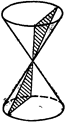 Так как Уравнение (5) называется полярным уравнением эллипса, параболы, правой ветви гиперболы. § 126. Эллипс, гипербола и парабола как конические сечения. Рассмотрим поверхность прямого кругового конуса, неограниченно простирающегося по обе стороны от его вершины. Плоскость, проходящая через вершину конуса может занимать относительно этого конуса следующие три положения: 1) Иметь с конусом только одну общую точку (вершину конуса (См. рис.187)). 2) Касаться конуса вдоль его образующей (См. рис.188). 3) Пересекать конус по двум различным его образующим (См. рис.189).