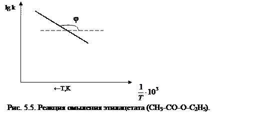 дает уравнение прямой линии. Знание констант скорости при нескольких температурах позволяет определить энергию активации данной реакции: