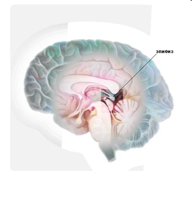 Эпифиз вырабатывает гормоны антигонадотропин и мелатонин, а также либерины и статины, тормозящие деятельность гипофиза до наступления половой зрелости. Мелатонин является производным биогенного амина - серотонина, который в свою очередь синтезируется из аминокислоты триптофана, поступающей с пищей.
