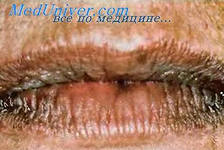| | При гиперфункции железы развивается тимико-лимфатический статус. Железа увеличина. У больного пастозное одутловатое лицо, рыхлая подкожная клетчатка, тучность, тонкая кожа, мягкие волосы