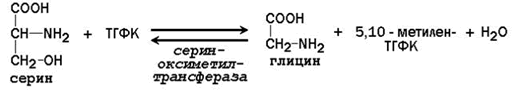 | 25.1.1.Главную роль в реакциях обмена серина и глицина играют ферменты, в состав которых в качестве кофермента входит тетрагидрофолиевая кислота (ТГФК). ТГФК образуется в организме в результате восстановления фолиевой кислоты (витамина Вс).