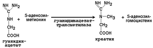 | 25.3.1.Синтез креатина в тканях человека протекает в две стадии. На первой стадии в почках образуется гуанидинацетат: