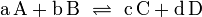 Сколько бы мы ни выдерживали смесь, как бы ее ни перемешивали — она остается мутноватой, будет содержать студенистый осадок амфотерного гидроксида алюминия, в данной системе выступающего как основание (см. Амфотерность). А значит, там же всегда будет находиться и какое-то количество соляной кислоты. Основание и кислота в одной колбе. Почему они могут сосуществовать? Потому что в той же колбе есть еще избыток воды и хлорид алюминия, способные реагировать друг с другом. Одновременно идут с одинаковой скоростью реакции (1) и (2). При этом в единицу времени образуется столько же новых веществ, сколько расходуется начальных соединений. Такое состояние системы называется химическим равновесием. Смешаем в газовой фазе или в разбавленном растворе два вещества — А и В, которые могут реагировать друг с другом с образованием продуктов реакции С и D. Допустим, что это обратимая реакция; большинство химических реакций обратимые, т. е. при взаимодействии веществ С и D вновь образуются А и В: