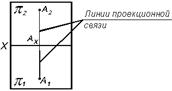 Проекции А1 и А2 располагаются на одной линии связи перпендикулярной оси Х. Эта линия называется линией проекционной связи (рис. 2.9)