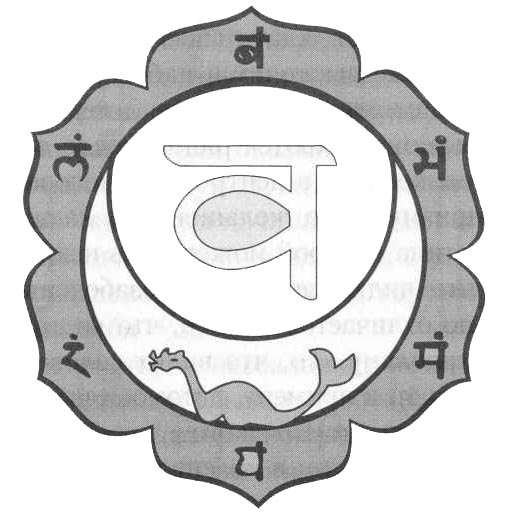 Частота колебаний энергетической среды чакры соответствует оранжевому цвету. Стихия чакры - вода. Символ-биджа - слог ВАУМ. При сосредоточении на свадхистане следует произносить именно этот звук, его вибрации устраняют препятствия для течения энергии в нижней части тела. Мандала чакры представляет собой шестилепестковый лотос. Внутри круга мандалы располагается полумесяц, образованный двумя окружностями. Меньшая окружность, которая занимает три четверти внутренности мандалы, олицетворяет воду, элемент, соответствующий этой чакре, занимающий три четверти поверхности Земли и составляющий три четверти массы тела человека. В полумесяце изображен крокодил, который, с одной стороны, воплощает иллюзию бессознательной жизни и скрытое движение карм. А с другой, крокодил ассоциируется с управляемой свадхистаной чувственной природой человека. Если же у человека эта чакра становится преобладающей, то такой «крокодил» охотится на свою добычу, используя множество маленьких хитростей. Попавший в его поле зрения, рискует стать жертвой вечного сексуального голода, отражающего повышенную сексуальную силу. Недаром, когда-то жир крокодила применялся для повышения мужской потенции. Эта чакра – центр энергий, связанных с сильными эмоциями инстинктов. Это уже не сохранение общего, общечеловеческого выживания и развития, это более индивидуальное личностное выживание, сохранение себя как индивида, как части целого. Это уровень коллективного бессознательного. На уровне психического тела человека – это сохранение себя, при полном неприятии морали, закона человеческого. Застрявших в развитии на уровне этой чакры, наши предки называли «шудрами» или самым низшим сословием, неспособным к принятию ни Закона Божьего, ни закона человеческого. Их закон – закон сохранения тела. Они даже не переступали через закон человеческий, они его не осознавали, а потому переступать было нечего. Они стремились в свое «стадо», но всегда разрушали его для собственного, сиюминутного выживания. Они живут только данным моментом жизни, завтра их не пугает только потому, что они про него не думают. В профессиональном действии - это даже не подмастерье. Способность к труду, к развитию у них на уровне нескольких движений. У них нет к нему иного интереса, кроме зарабатывания на кусок хлеба (еда). Начало различения себя, отделения себя от внешнего мира, индивидуального выживания «во чтобы то ни стало». Начало взаимодействия энергии Космоса и энергии Земли, энергия сильная, мощная, но уже не такая хаотичная, имеет свои цели для достижения. Свадхистана – проекция внутритазового Яйца Кады в нижней части поясницы, там, где находится мочевой пузырь. Это очень мощный центр, являющийся проводником энергии активности и контролирующий половую сферу человека. Это центр эфирного оформления творений и идей, их энергетизации. Физической экстернализацией Свадхистханы являются надпочечники и половые органы. Цвет оранжевый и мантра «ВАУМ».