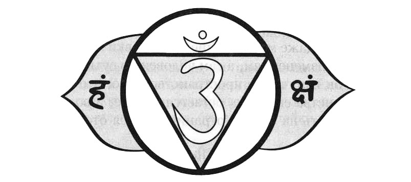 Стихия чакры - самосознание, или волевая сила Вселенной. Символ - биджа - слог ОМ. Мандала чакры представляет собой двухлепестковый лотос, в центре которого расположен треугольник вершиной вниз. Одно из символических значений треугольника - прохождение энергий сахасрары к нижним чакрам через аджну. В треугольнике расположен символ-биджа - ОМ. Мантра чакры - слоги ХА и ТХА, расположенные на двух лепестках лотоса. Энергия этой чакры – это энергия Веры. Это интуитивное доверие этому миру, который может существовать и без вмешательства отдельной личности. На этом уровне доверия к миру, к себе в этом мире, на уровне интуитивного чувствования происходящего участник становится соучастником. Он движется только в том направлении, откуда слышит зов о помощи, он не определяет сам направление отношений с внешним миром, но движется туда, где, услышав зов о помощи, видит свою необходимость. Эго приобретает функцию обозначения себя во внешнем мире, оно становится простой необходимостью в отношениях с внешним миром, через него происходит обозначение Пути, а не значимости личности. Интеллект становится механизмом общения с внешним миром, его значимость теряется настолько, что личность перестает стремиться к последовательности, доказательности, логичности. Но продолжает эксплуатировать эти механизмы ума, чтобы оставаться понятой для того же окружения. Уровень планетарного сознания или сверхсознания позволяет увеличить „масштабность” происходящего, но это уже не расчет интеллекта – это уже более интуиция. Личность настолько доверяет себе и окружающему ее миру, что может действовать без жесткого просчитывания, без конкретного плана действия, а более по наитию, по чувствованию ситуации. Доверие к себе делает эту личность магической, от нее исходит такое спокойствие, такое „внутреннее не напряжение”, что это завораживает окружающих. Проявляется природный магнетизм, сила внушения без слов. Выделение себя из внешнего мира становиться минимальным. Интеллект значим, как механизм, как функция, как необходимость, для исполнения своего предначертания. Изменения внешнего мира воспринимаются как иллюзия, игрушка для обучения, развития, совершенствования себя. Эго сохраняется как видимость, как необходимость для окружения, которому необходима личность такого уровня сознания. Сохраняется желание быть понятым для исполнения Осознаваемого Долга. Происходит еще большее преобладание энергий Космоса над энергиями Земли, которые направлены на исполнение Законов Божьих, все человеческое – это уже более игра, чем нечто строгое, направляющее и управляющее. Это уровень планетарного осознанного – существует личность, которая Закон Божий принимает таким, каким он есть.