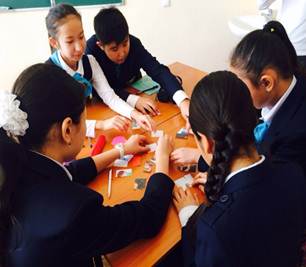 In the stage of warming-up activity Assem took to learners interesting game. Pupils tried to play it as quicker as they can. It was very fun for learners to remember previous lessons’ words.
