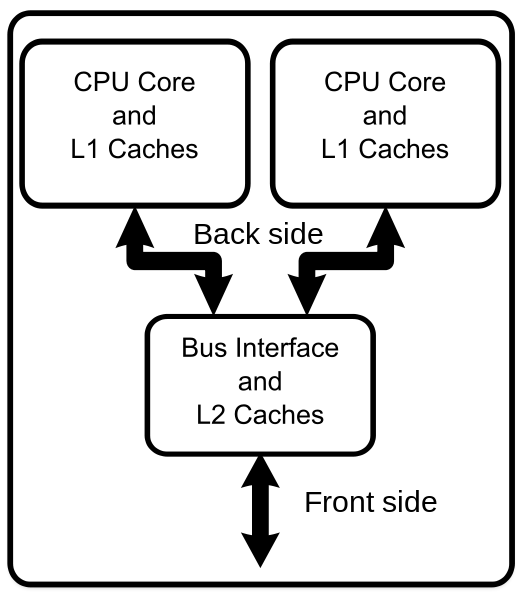 Архитектура современного персонального компьютера много сложнее и предполагает использование нескольких взаимосвязанных шин: процессорная шина, шина памяти, графическая шина, несколько разновидностей шин для подключения дополнительных внешних устройств, а также шина для соединения микросхем набора системной логики. Front Side Bus (FSB) — шина, обеспечивающая соединение между x86-совместимым центральным процессором и внутренними устройствами. Как правило, современный персональный компьютер на базе x86-совместимого микропроцессора устроен следующим образом: микропроцессор через FSB подключается к системному контроллеру, который обычно называют «северным мостом», (англ. Northbridge). Системный контроллер имеет в своём составе контроллер ОЗУ (в некоторых современных персональных компьютерах контроллер ОЗУ встроен в микропроцессор), а также контроллеры шин, к которым подключаются периферийные устройства. Получил распространение подход, при котором к северному мосту подключаются наиболее производительные периферийные устройства, например, видеокарты с шиной PCI Express 16x, а менее производительные устройства (микросхема BIOS'а, устройства с шиной PCI) подключаются к т. н. «южному мосту» (англ. Southbridge), который соединяется с северным мостом специальной шиной. Набор из «южного» и «северного» мостов называют набором системной логики, но чаще применяется калька с английского языка «чипсет» (англ. chipset). Таким образом, FSB работает в качестве магистрального канала между процессором и чипсетом.