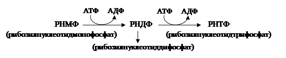 Образовавшиеся нуклеозидмонофосфаты, как отмечено выше, для выполнения своих функций с помощью соответствующих киназ подвергаются постадийному фосфорилированию: