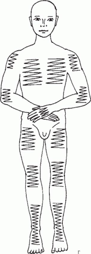 Топология применения веничных компрессов: в – со стороны спины; г – со стороны живота Поработав со спиной, можно приступать к массажу передней части тела, повторяя все приемы. Однако манипуляции следует проводить в щадящем режиме, обязательно обходя область сердца. При массировании нижнего участка живота желательно прикрыть также паховую зону. Начинается процедура с поглаживания, после чего идет похлестывание, медленно переходящее в постегивания. Последние приемы полезно сочетать с веничными компрессами и припарками. При этом нужно соблюдать следующую очередность: грудь, живот, бедра, голени, стопы. Массаж верхних конечностей проводится от ладоней к плечевому поясу. Новичкам не рекомендуется пользоваться веником в первое и последующие посещения парной. Только доведя постепенно время своего пребывания в парной до 8–10 минут, новичку можно 1–2 минуты позволить себе испытать удовольствие от веничных процедур. По окончании парных веничных процедур нельзя резко вставать. Необходимо 1–2 минуты посидеть на нижней полке, а затем можно покинуть парную. Энергичность проведения всех веничных процедур должна соответствовать температуре в парной. Если она низкая, то выполняют более энергичные похлестывания и другие движения веником, а если температура высокая, то движения веником должны быть осторожными, мягкими. Веник нужно периодически смачивать холодной водой. Date: 2015-04-23; view: 677; Нарушение авторских прав |