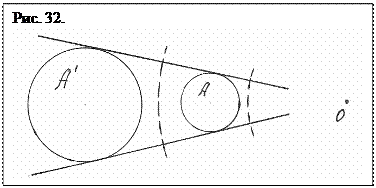 Динамически параллельные следы-прямые от движущихся к единому центру точек, с прекращением движения (с «замораживанием»), становятся двумя линиями в статике. При их продолжении, они пересекаются, и в статической геометрии образуется угол. Так начинается переход от динамической геометрии к статической, а анизотропное пространство превращается, при отсутствии в нем механического движения, в пространство изотропное - мыслимое. Надо отметить, что до сих пор отсутствует четкое представление и о такой древней фигуре, как угол, о его образовании и измерении. Нам кажется, что наиболее точное представление об угле и его измерении изложено у А. Митрохина [6]. Он констатирует: «… образованию места пересечения предшествует наличие двух непараллельных линий или плоскостей, поэтому правильнее будет говорить не об измерении угла, а об измерении степени непараллельности, величины раскрытия или раствора линий и плоскостей. И далее: Сам угол не подлежит измерению, измерить можно только не параллельность, раскрытие (раствор) двух линий или плоскостей». Здесь, похоже, на интуитивном уровне констатируется то обстоятельство, что непараллельные линии, хотя и образуют угол, тем не менее, могут и не пересекаться и, следовательно, точка их «пересечения» может отсутствовать. Но это к слову. Свойство анизотропии пространства, обусловливающее силовую деформацию падающим к плотностному центру телам-точкам в движение динамической параллельности, проявляет себя в статической геометрии в виде математической гомотетии. В этой геометрии гомотетия есть тождественное преобразование фигуры со сжатием к точке. Однако такое представление ошибочно. Оно постулативно предписывает бесконечному процессу движения фигуры вглубь превращение ее в конечную точку. Гомотетия в статической геометрии не математическое преобразование, а отображение реального механического движения, т.е. является элементом динамики. В динамической геометрии гомотетия предполагает определенное движение тела с минусовым ускорением (или замедлением скорости течения времени) к некоторому отсутствующему центру анизотропного пространства с тождественной плотностной силовой деформацией всех его точек (рис. 32). Отметим, что «силовая» деформация при движении к неявному центру и отображает в статической геометрии наличие формально подобных фигур (на рис. 32 проявление подобия показано окружностями). Гомотетия же, как тождественное пропорционирование параметров тел при нескончаемом механическом движении, обусловливает существование инвариантного аппарата, который обеспечивает пропорционирование количественных отношений численных величин свойств в процессе перемещения тел по шкале гомотетической бесконечности. В этом случае точкой отсчета является положение тела в той системе, в которой оно сопоставлено плотностному телу.