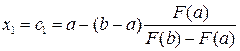 то есть найдем первое приближение к решению – с 1; 2) вычисляется значение функции в этой точке – 3) выполняется анализ изменения функции на отрезках 4) проводим новую хорду через ординаты функции F (с 1) и F (b); 5) используя выражение (9.5) (заменяя в индексах 1 на i), находим новое приближение к решению (на рис. 9.5 – точку с 2). Процедуры, изложенные в п. 2–5 (с учетом замены с 1 на сi), повторяем Анализ показывает, что метод хорд приводит к решению быстрее, чем Блок-схема метода хорд аналогична представленной для метода деления отрезка пополам с той разницей, что вместо вычисления приближения корня по формуле (с + b) / 2 нужно использовать формулу (9.5). Для решения нелинейных уравнений могут применяться также метод Ньютона (метод касательных), метод простой итерации и другие методы.