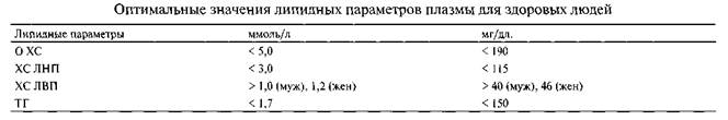 Приложение 3 к журналу "Кардиоваскулярная терапия и профилактика", 2009; 8(6) генетических процессах. Сегодня доминируют две гипоте- компенсаторные возможности медиального слоя артерии, зы развития и становления атеросклероза: гипотеза «ответ и не приведет к прогрессирующему сужению ее просвета. на повреждение» и липидно-инфильтрационная гипотеза. Именно на этом этапе бляшки приобретают характер Многочисленные исследования в области липидологии и нестабильных и играют основную роль в развитии ослож- других областях показали, что обе гипотезы в принципе не нений атеросклероза, Гипотеза «Ответ на повреждение», сформулированная ученым, патоморфологом Н.Н. Аничковым, который еще в Прогрессирующее утолщение интимы ведет к разви- Как видно из изложенного, последние стадии ате- тию гипоксии внутри бляшки и в близлежащих участках росклероза в обеих гипотезах описываются практичес- сосуда. Гипоксия является возможной причиной развития ки одинаково и не имеют противоречий, васкуляризации бляшки из системы ваза-вазорум адвен- росклероза и его осложнений с помощью препаратов тиции. Эти сосуды в сердцевине бляшки являются источ- ингибиторов синтеза холестерина — статинов, во многом ником микрогеморрагий (апоплексии) в ней, что в свою подтверждают правоту липидной теории. В то же время, очередь ведет к усилению ее тромбогенной активности. В еще раз необходимо подчеркнуть, что обе теории не явля- результате ослабления мышечно-эластического слоя сосу- ются взаимоисключающими, скорее наоборот, объясняя да в коронарных артериях происходит их ремоделирова- основные механизмы, лежащие в основе формирования ние с дилатацией, причем внутренний диаметр просвета атеросклероза и его осложнений, они открывают новые сосуда какое-то время поддерживается «нормальным», до возможности в поисках более совершенной терапии этого тех пор, пока прогрессирующий рост бляшки не превысит недуга и его последствий. 6. Лабораторная диагностика дислипидемий 6.1. Анализ ЛИПИДОВ, нормальные значения, цифра получена в результате проведенного в 1973-1976 гг. критерии оценки образца популяционного исследования в рамках международной Согласно данным Совета Экспертов и Методических программы липидных клиник. Однако, с позиций про- рекомендаций Всероссийского научного общества кар- филактики атеросклероза и его осложнений, желатель- диологов, которые опубликованы в 2004 году, верхняя но, чтобы уровень ОХС в сыворотке крови не превышал граница нормального уровня ХС в сыворотке крови в 5,0 ммоль/л; ТГ — 1,7 ммоль/л, ХС-ЛНП — 3,0 ммоль/л, российской популяции составляет 6,2 ммоль/л. Эта аХС-ЛВП был в пределах 1,0-1,89 ммоль/л (Таблица 3). Таблица 3
