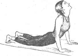 На вдохе подайте грудь вверх и немного вперед, опираясь руками о пол. Локти прижмите к телу. Поднимите голову вверх за счет выпрямления позвоночника. Не начинайте это движение с головы и не вытягивайте туловище вместе с шеей.