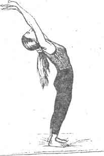 На вдохе поднимите руки над головой. Легко вытягивая и как бы удлиняя позвоночник, примите растянутое положение.